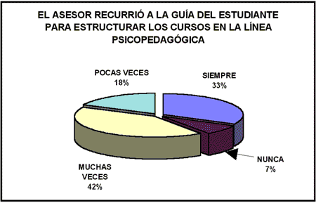 Ahora bien, si reconocemos que la guía del estudiante representa un documento esencial tanto para el asesor como para el profesor-alumno y que sirve de base para delimitar contenidos y límites de una estructura curricular, en donde se articulan y vinculan niveles, cursos y grados, resulta interesante indagar por qué no se utilizó.